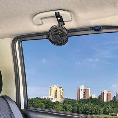 従来の車内用扇風機は窓上の手すりなどにクリップで取り付ける仕様のものが多く、使う人によっては製品そのものが「ちょっとスペースを使いすぎ」と思われていたかもしれません。