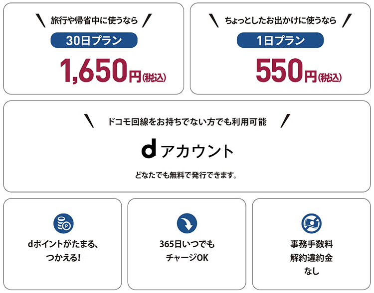 旅行中や帰省中、ちょっとしたお出かけに。30日や1日単位で使用できるのもうれしいポイントです。