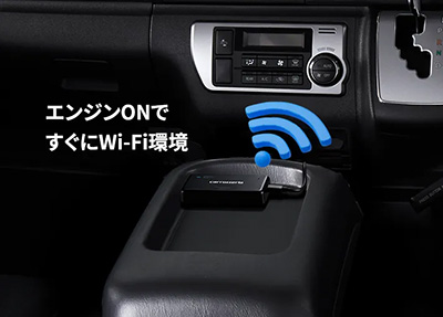 エンジンONですぐにWi-Fi環境に。走行中は無制限、停車中の利用は最大2時間!