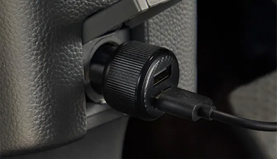 車載用Wi-Fiルーターはバッテリーを内蔵しないかわりに、車両から電源を取るシガーチャージャーとUSBケーブルを同梱。バッテリーの減りを気にせず安心して利用できます。